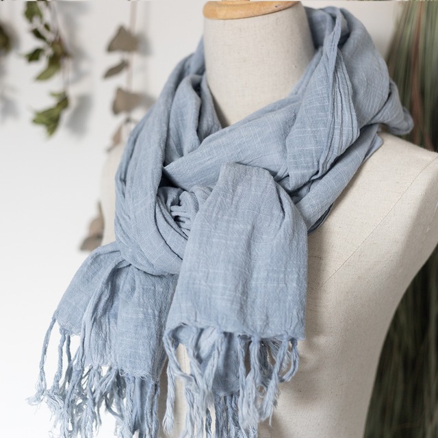 【草木染め 黒豆】しっとり柔らかなスラブ楊柳ストール / スモーキーブルー(綿100%)