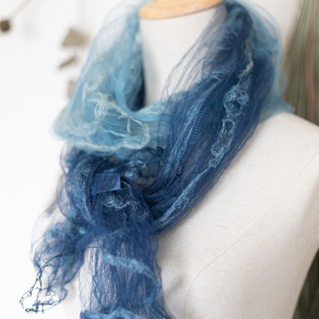 【一点もの】天然本藍染 手染めぼかし 三重仕立てシルクストール / シルク100%