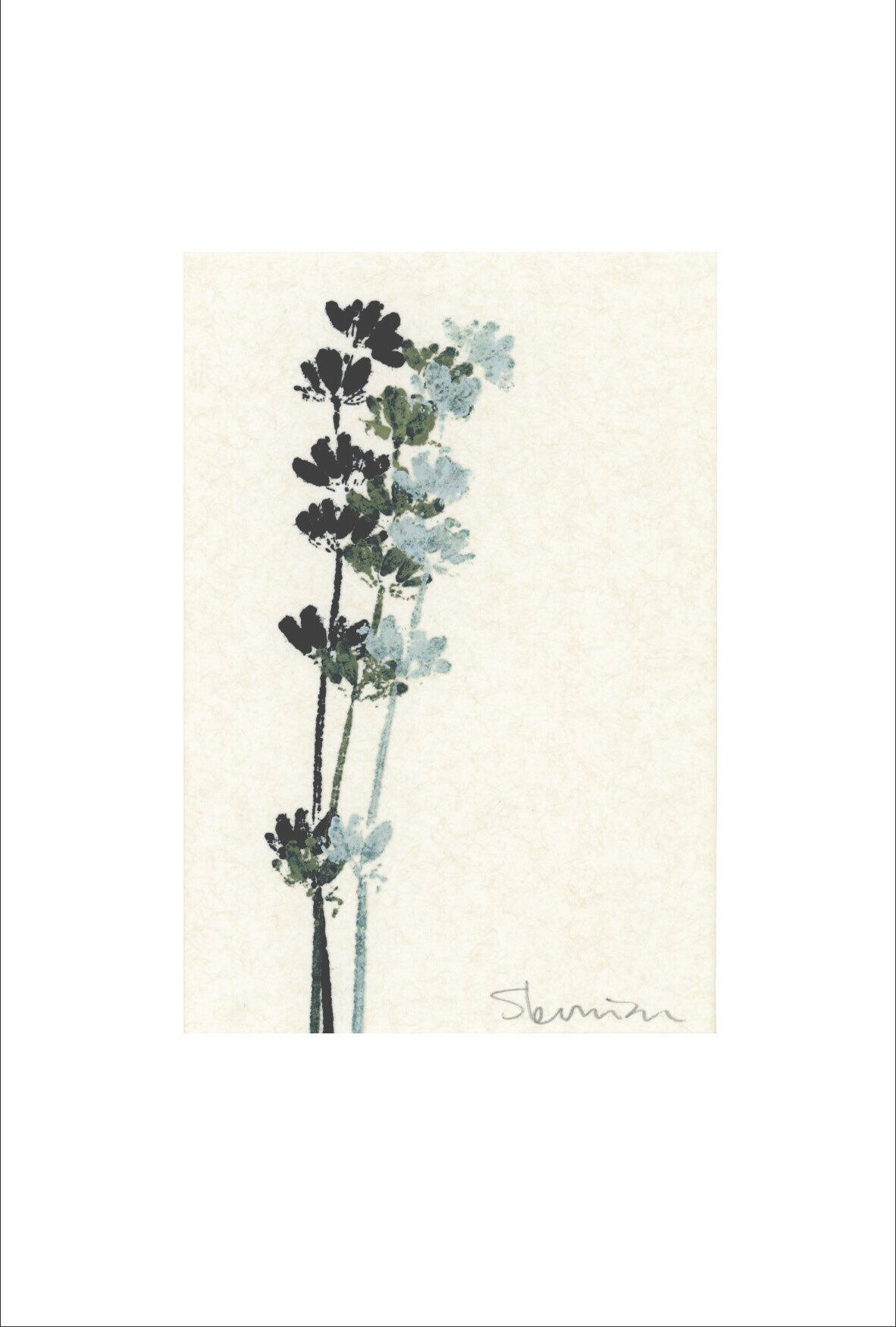 ホンモノの植物で刷ったボタニカルモノプリント(版画)の原画をデジタル化し、原寸のまま複製したポストカード。