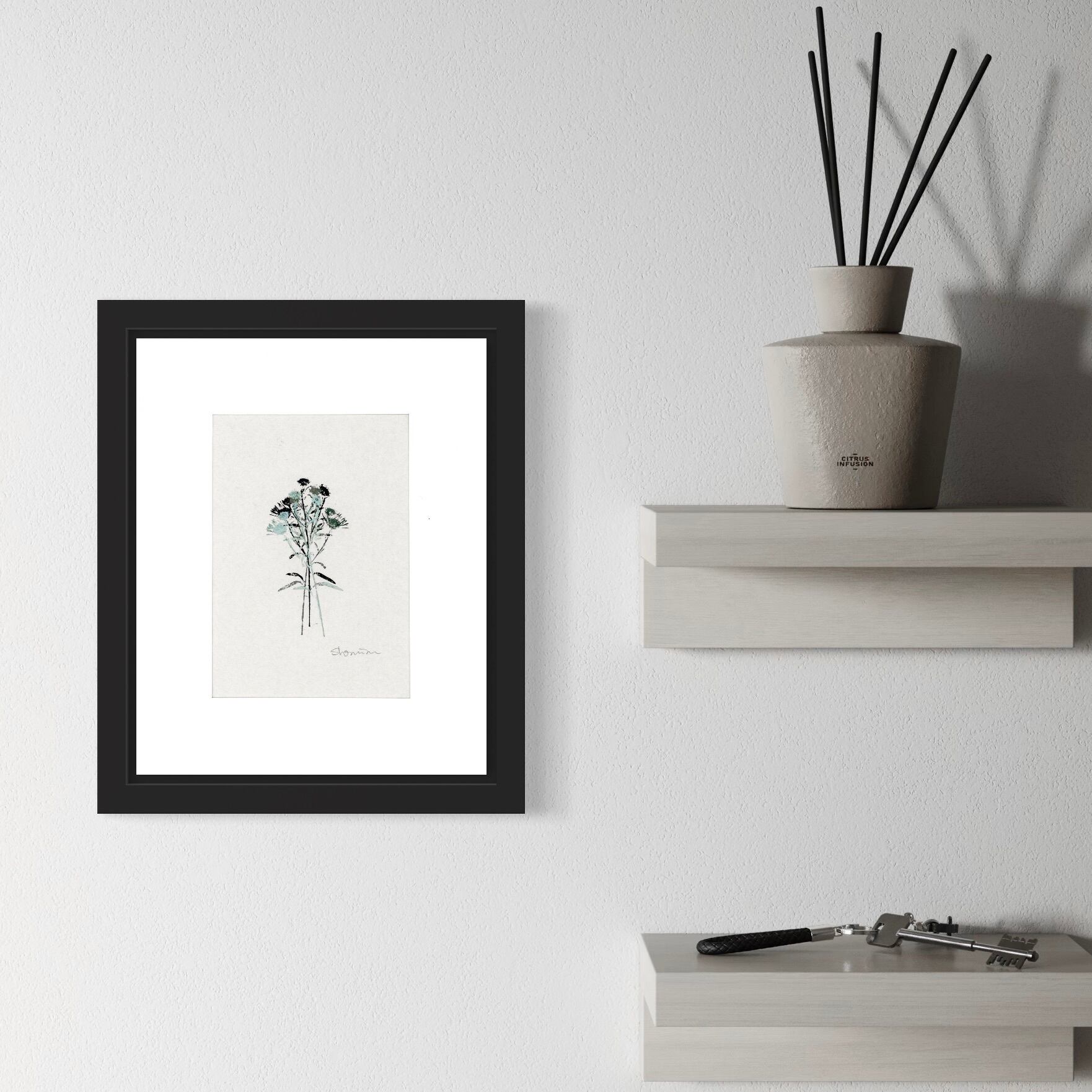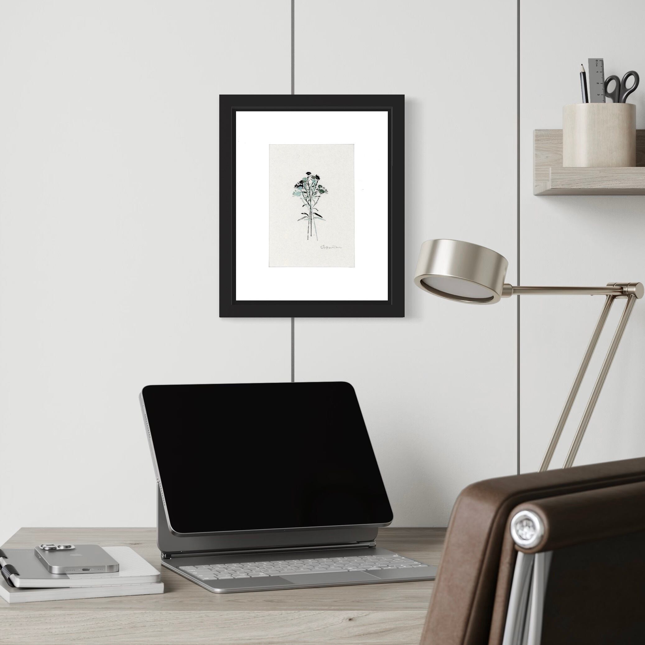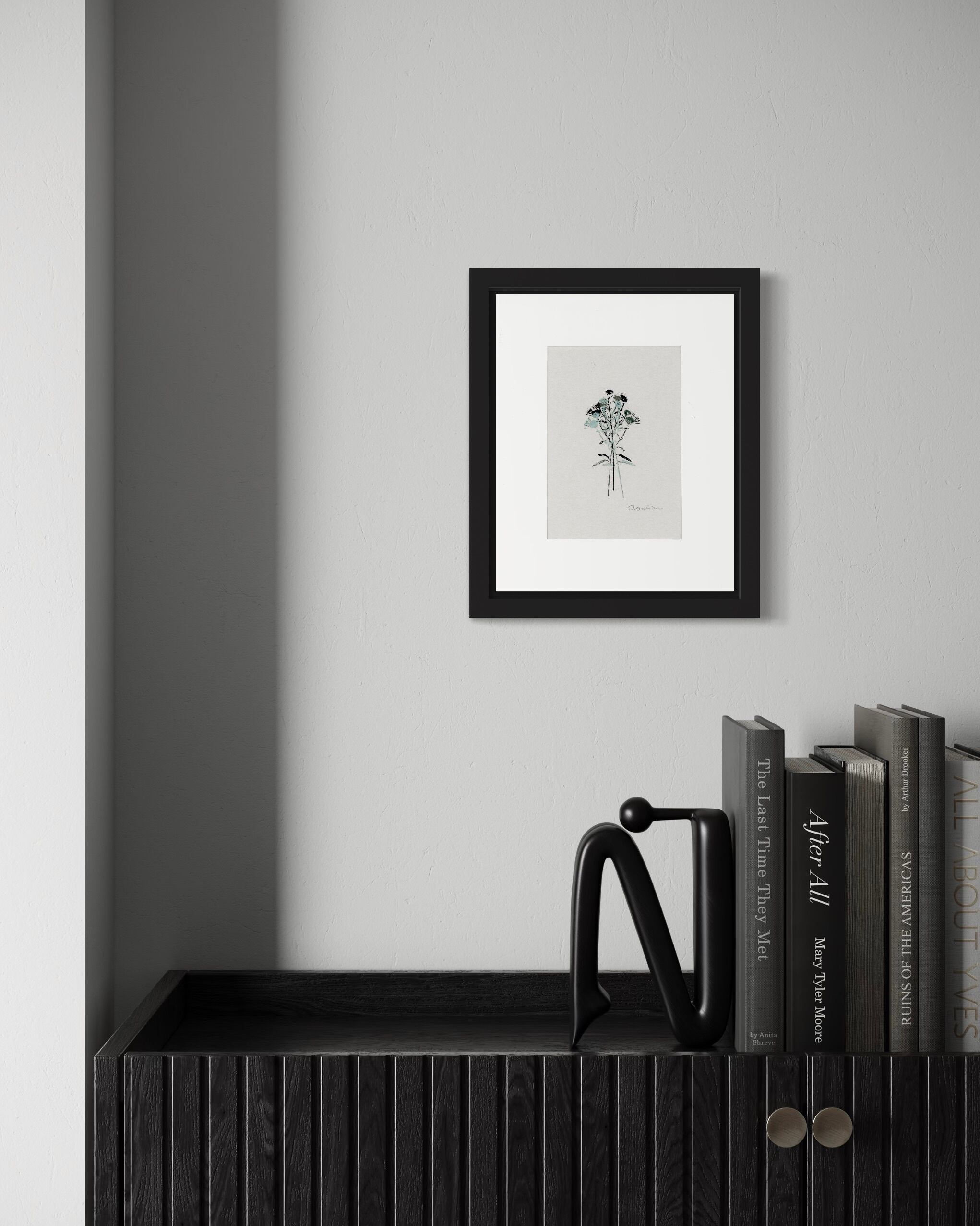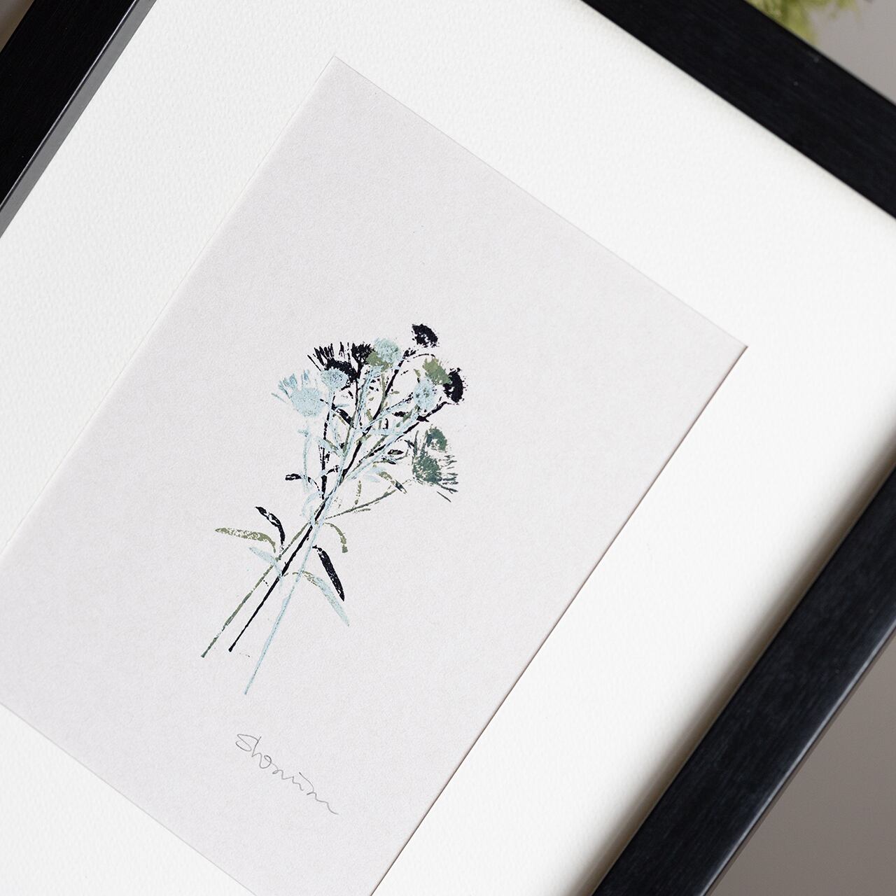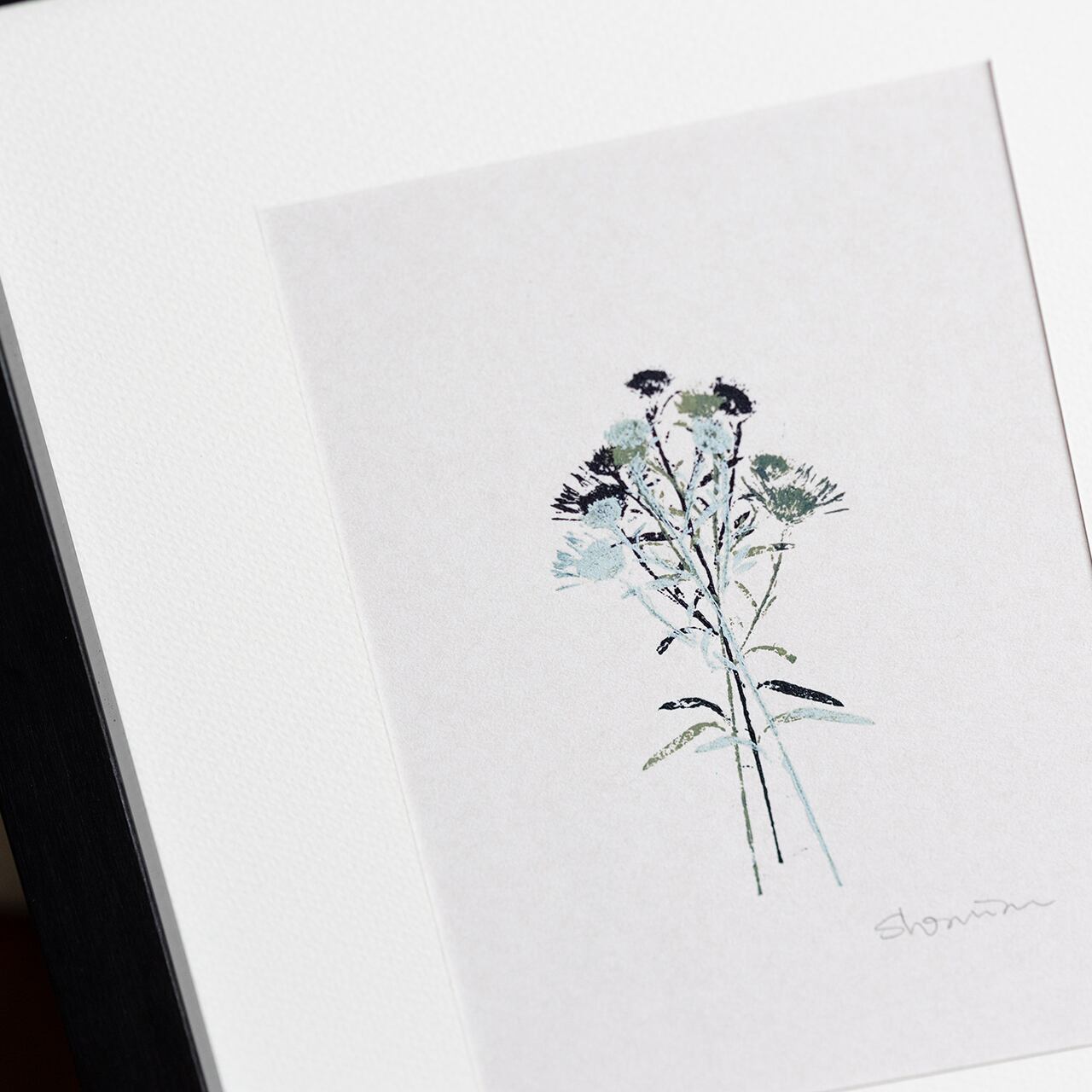 ナチュラルながら洗練された雰囲気の版画、黒のフレームが都会的な雰囲気をプラスしています。飽きのこないシンプルなアートは、お部屋やシチュエーションを選びません。ご自宅のインテリアやアクセントとして、また、ギフトとしても最適な1枚です。