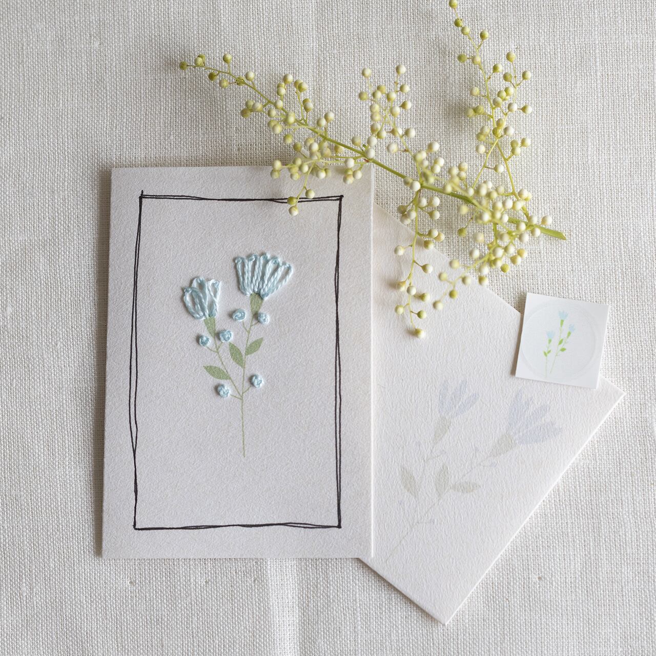 幸せを運ぶ花、青いデルフィニュームの小さなカードは、大切な方への心温まる贈り物にひっそり添えるのに最適。シンプルでありながらエレガントなデザインは、シチュエーションを選びません。