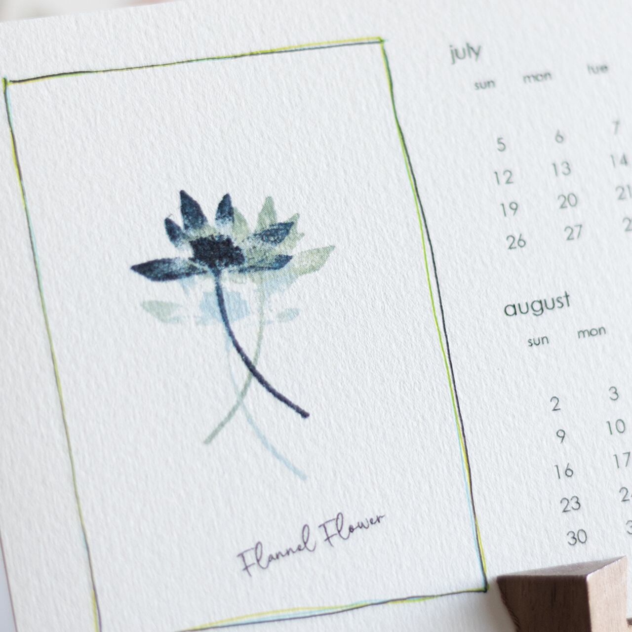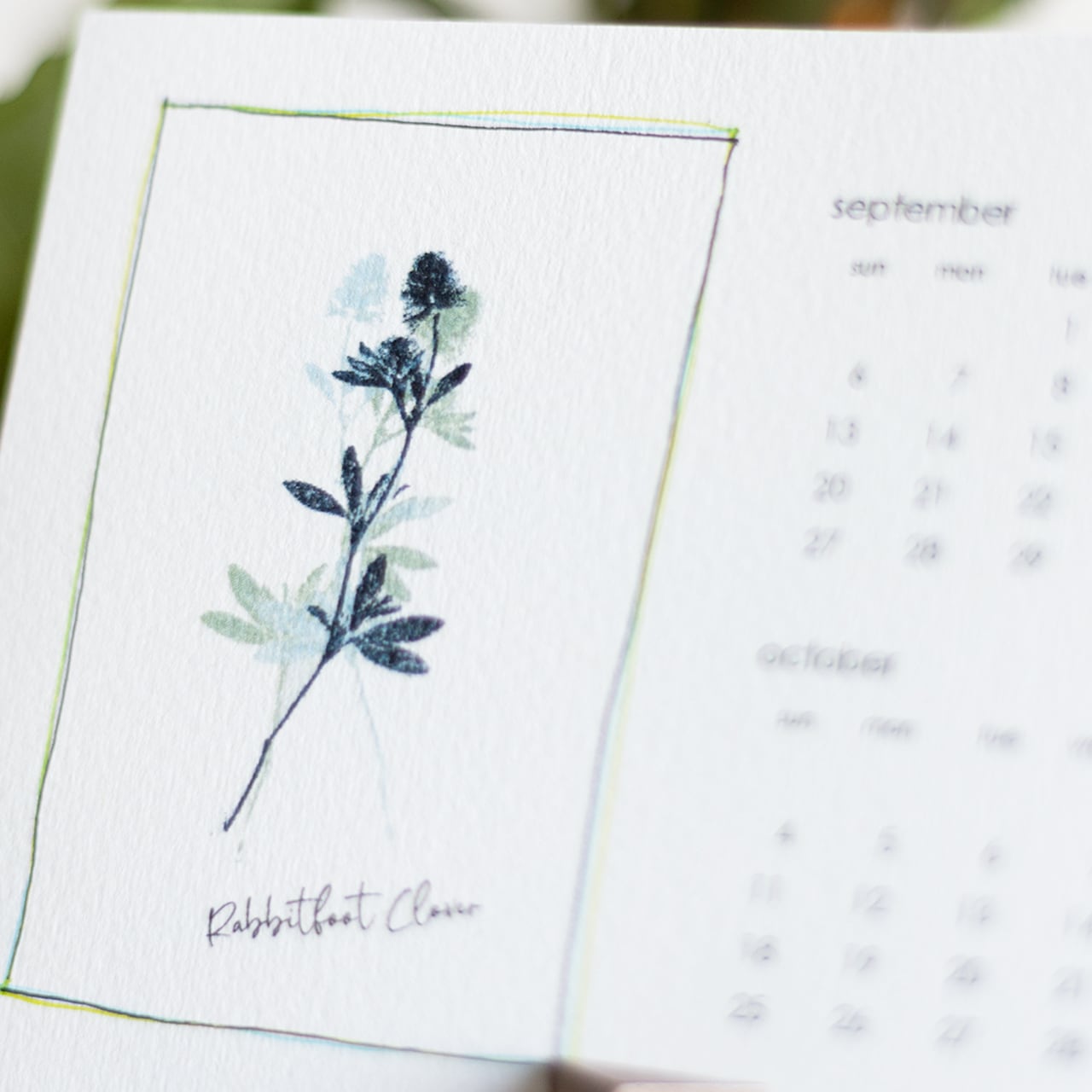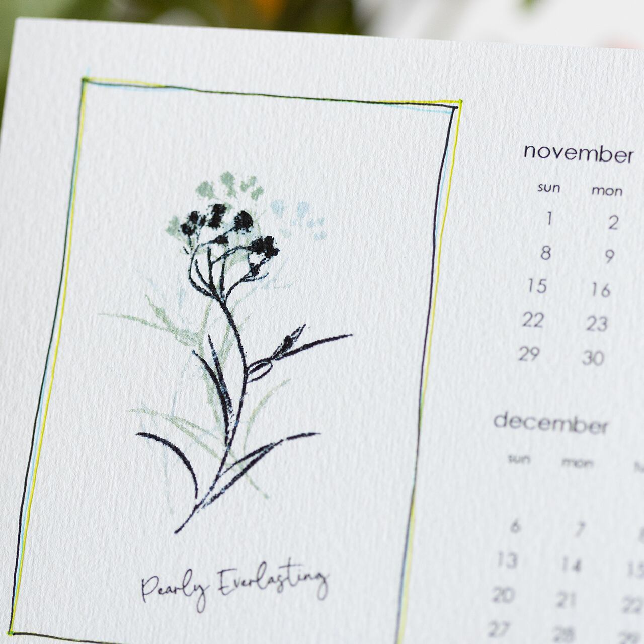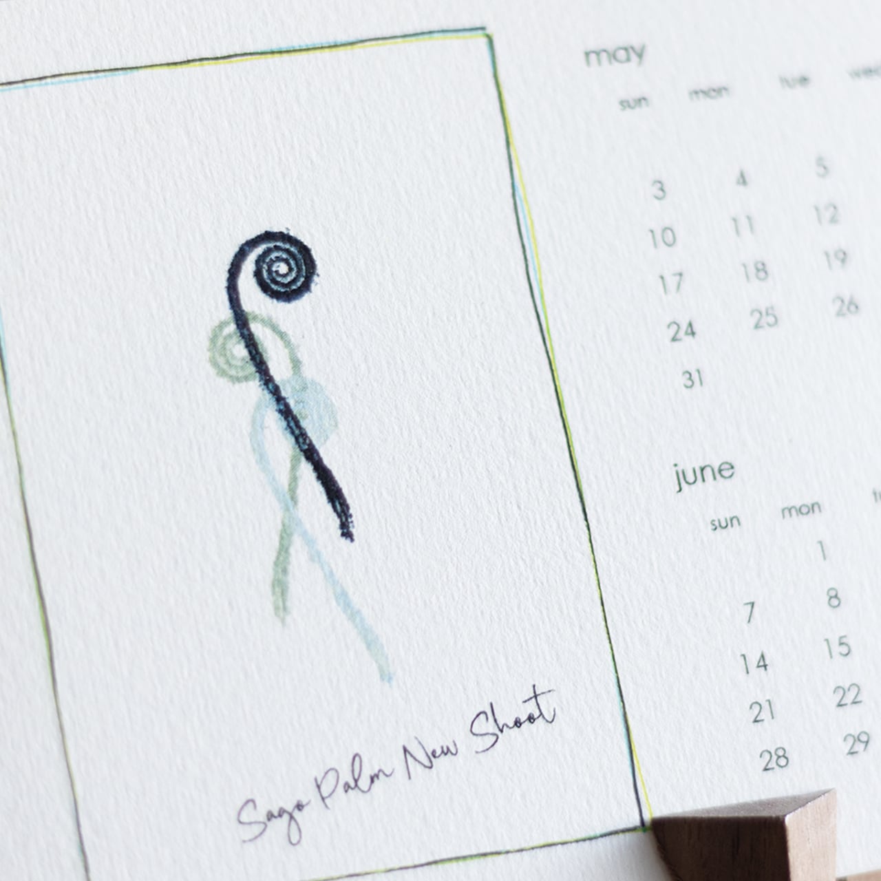 ボタニカルモノプリントのシンプルな2026年カレンダー。2ヶ月1枚、ポストカードサイズの小さめカレンダーです。