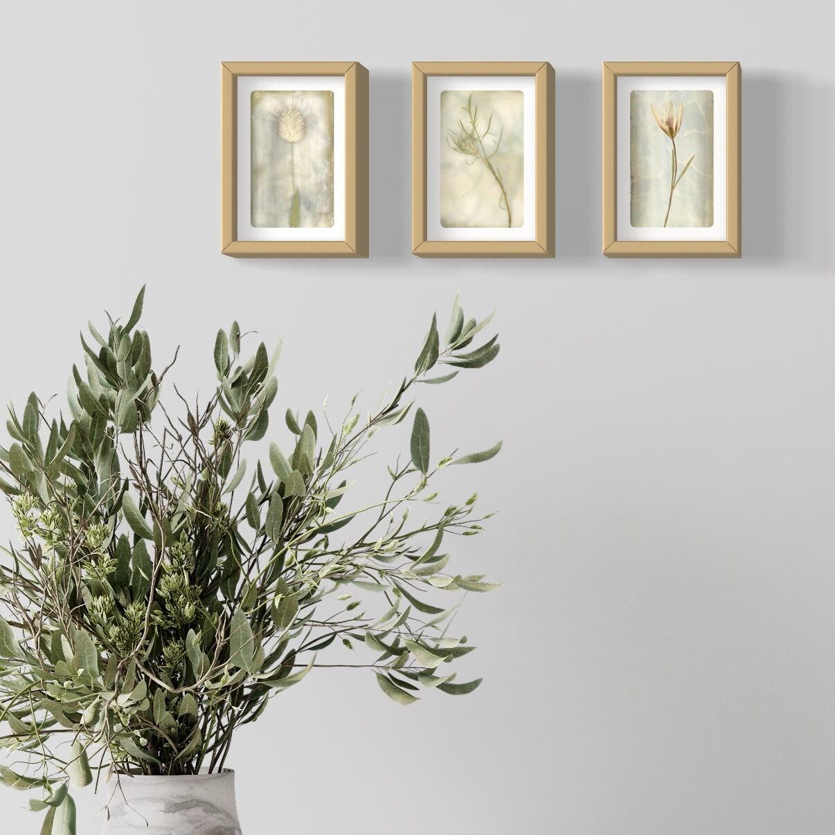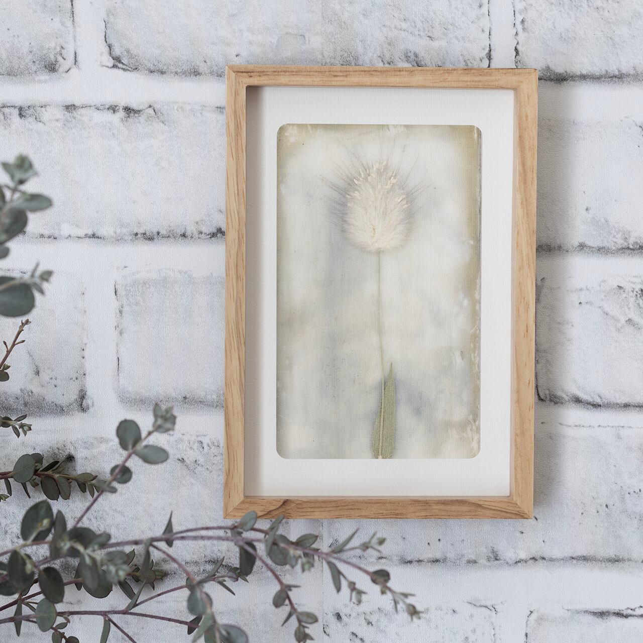 ハンドメイドポストカード。蜜蝋画(encaustic)に押し花を埋め込んだ、ビーズワックスコラージュの複製カード。